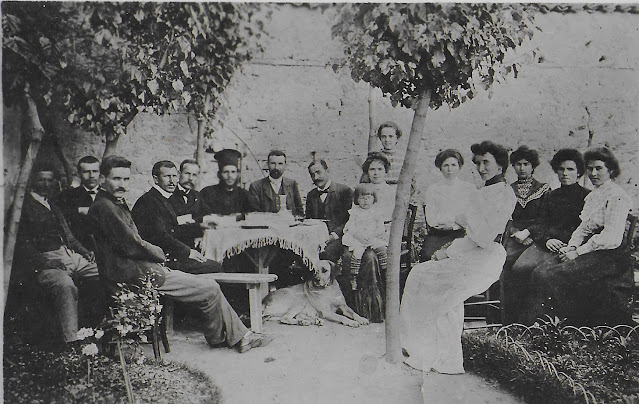 Градско многолюдно семейство или ровдова среща, и голямо и голо куче, в началото на ХХв.